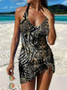 Women's Vintage Art Print Pleated V-Neck Casual Swimsuit