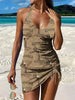Women's Vintage Art Print Pleated V-Neck Casual Swimsuit