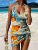 Women's Vintage Fish Print Pleated V-Neck Casual Swimsuit