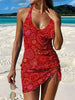 Women's Vintage Floral Print Pleated V-Neck Casual Swimsuit