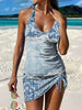 Women's Vintage Floral Print Pleated V-Neck Casual Swimsuit