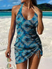Women's Vintage Geometric Art Print Pleated V-Neck Casual Swimsuit