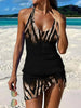 Women's Vintage Leopard Print Pleated V-Neck Casual Swimsuit