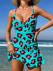 Women's Vintage Leopard print Print Pleated V-Neck Casual Swimsuit
