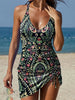 Women's Vintage Paisley Floral Print Pleated Swimsuit Set