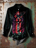 Women's Vintage Punk Halloween Skull Raven Window Printed Casual Long Sleeve Irregular Shirt