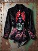 Women's Vintage Punk Halloween Witch Bats Printed Casual Long Sleeve Irregular Shirt