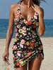 Women's Vintage Romantic Floral Print Ruched Swimsuit Set