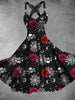 Women's Vintage Skull Floral Art Print