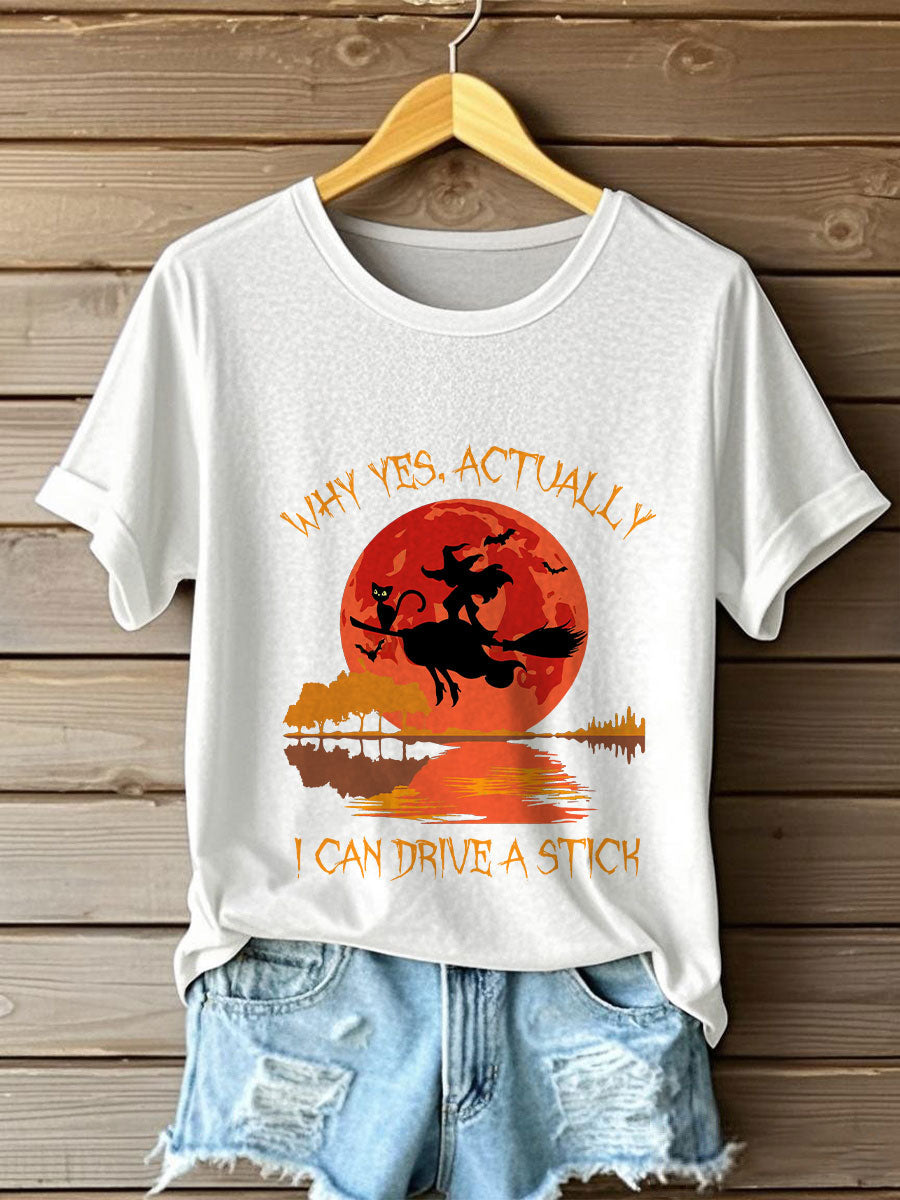Women's Witch "Yes, I Can Drive A Stick" printed T-shirt